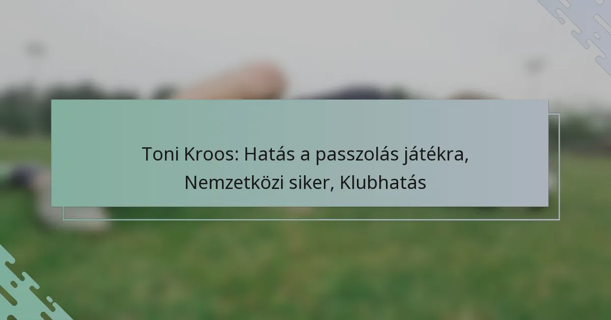 Toni Kroos jelentős hatással van a passzolási játékra kivételes precizitása és látásmódja révén. Képessége, hogy rövid és hosszú passzokat is nagy pontossággal hajtson végre, kulcsszereplővé tette őt a modern futballban, befolyásolva a csapatdinamikát és stratégiákat.